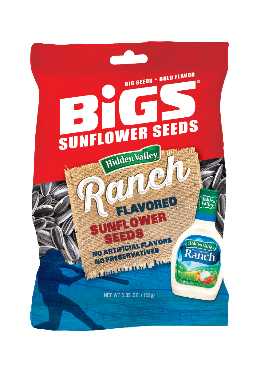 Packaging design, Ad campaign's and naming for Bigs Ranch flavored sunflower seeds.